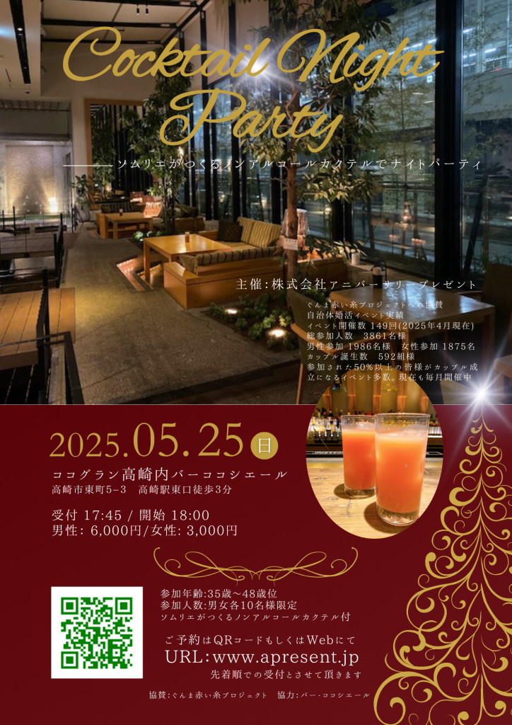高崎カクテルナイトパーティ 35歳~40歳代中心開催