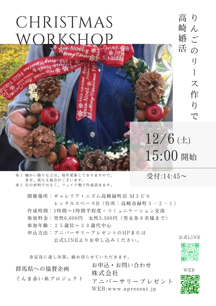 クリスマス特別企画 りんごのリース作りで高崎婚活