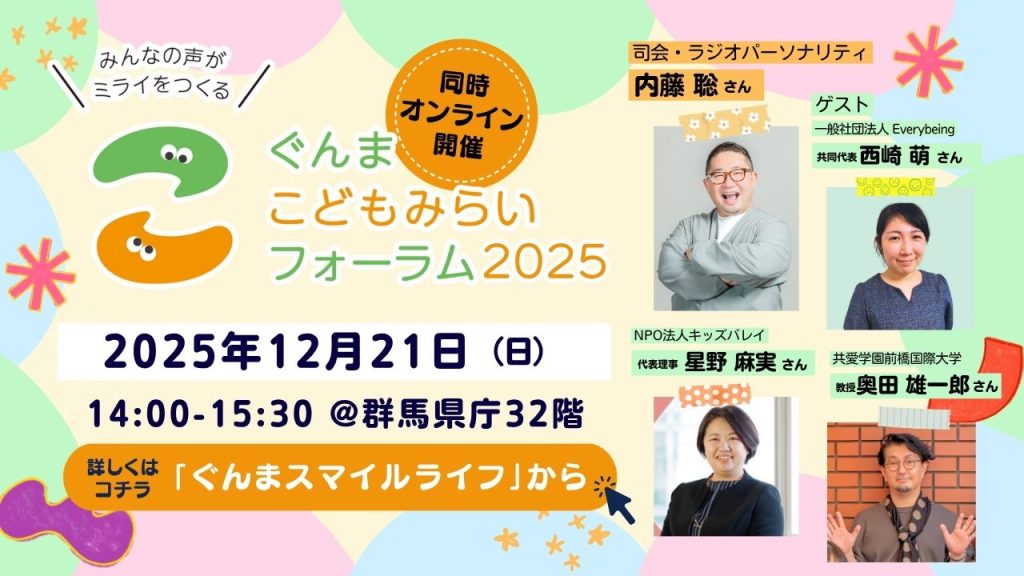 ぐんまこどもみらいフォーラム2025」は、「こどもの権利」や「こどもまんなか」について、みんなで一緒に考える参加型イベントです!