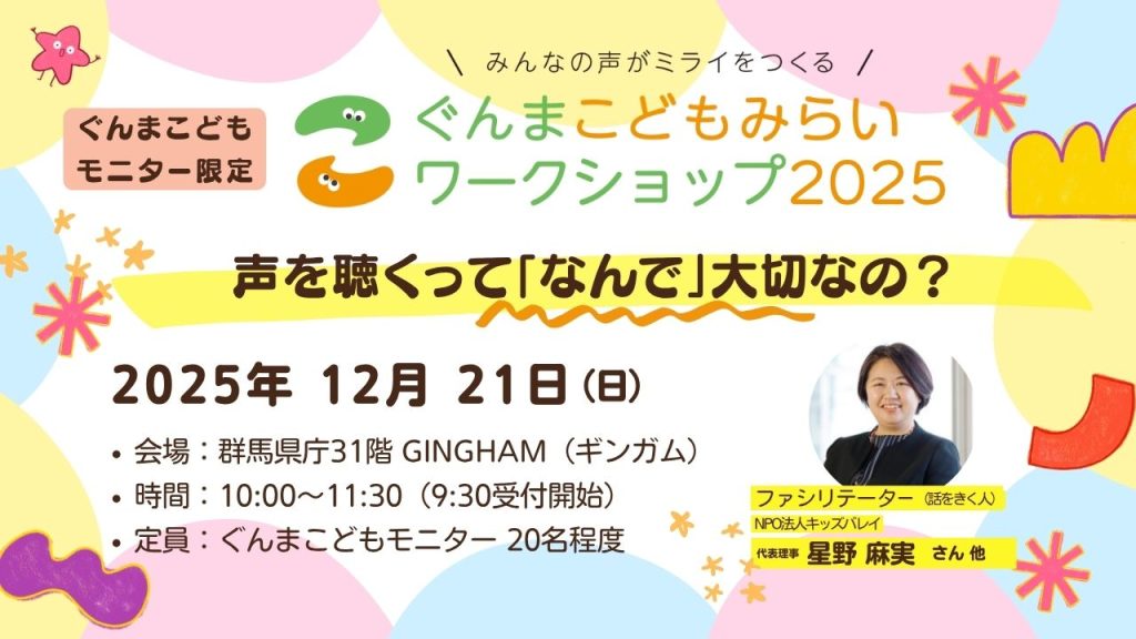 - 同日の午後に一般参加型の「ぐんまこどもみらいフォーラム2025」を開催します。(フォーラムはご家族の方も参加できます)。