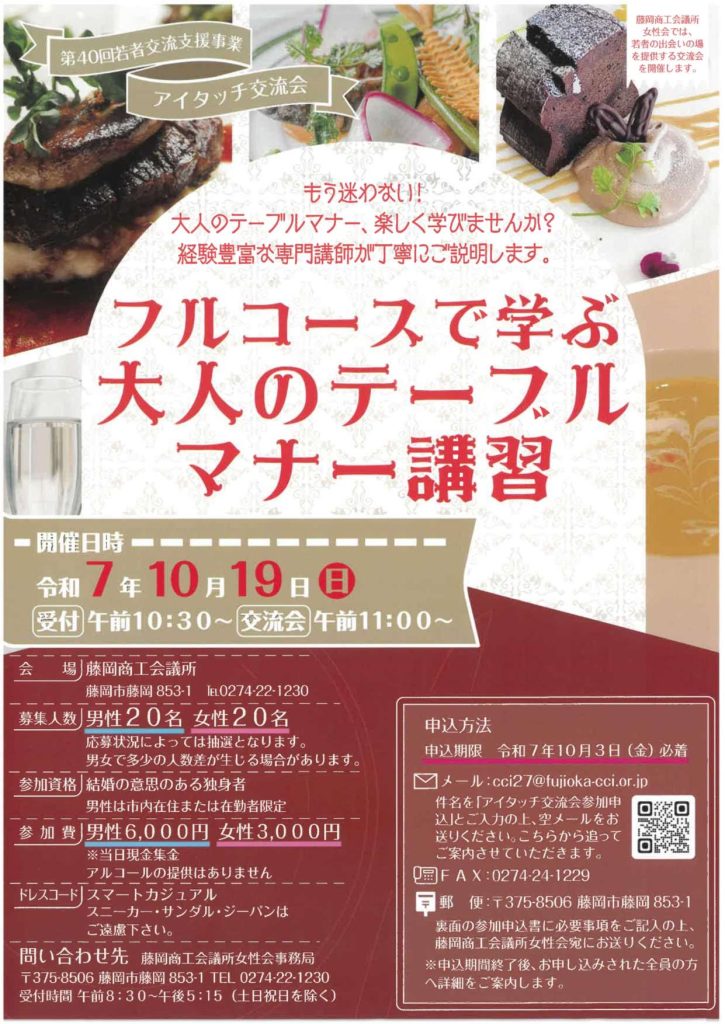 第40回若者交流支援事業 アイタッチ交流会~フルコースで学ぶ大人のテーブルマナー講習~
