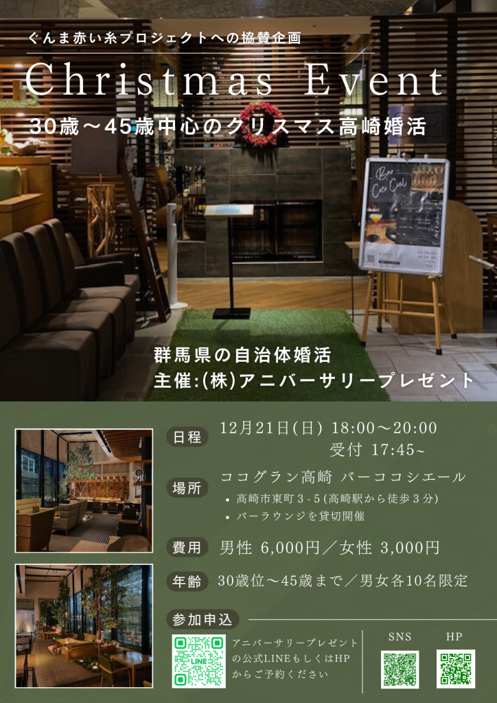 - ・群馬県の自治体婚活で実績のあるアニバーサリープレゼント主催の高崎婚活。これまでの総参加人数は4300人以上、カップル成立数も650組を超え、毎週末にイベント開催中になります。