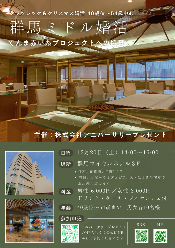 前橋の有名ホテルで40歳~54歳中心のクラッシック&クリスマス婚活