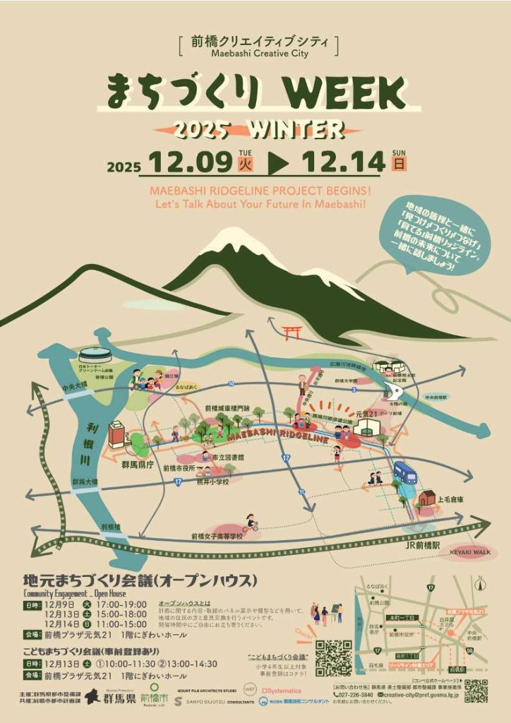 令和7年8月に開催した「まちづくりWeek2025夏」に続き、皆様とともに未来の前橋を描く「まちづくりWeek2025冬」を開催します。新しい前橋をともに考え、創るこの機会に、ぜひ積極的にご参加ください。