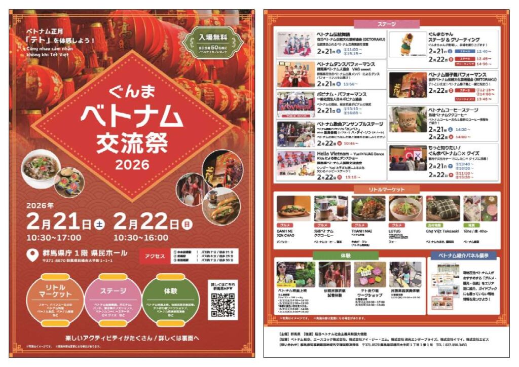 ベトナムのお正月「テト」をお祝いしながらベトナムの食や文化を体験できるイベント『ぐんまベトナム交流祭2026~ベトナム正月「テト」を体感しよう!~』を開催します。