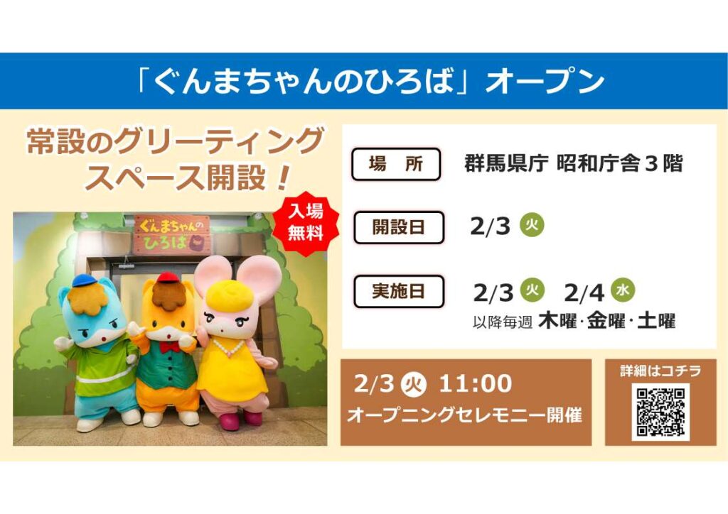 ぐんまちゃんのグリーティングスペース「ぐんまちゃんのひろば」がオープンします。「ぐんまちゃんにいつでも会える」を実現する、ぐんまちゃんの新しい取り組みです。