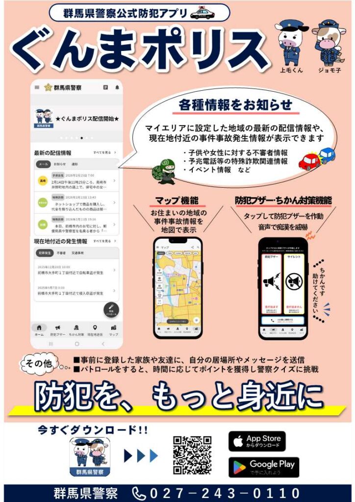 この機会に、是非「ぐんまポリス」をインストールして、ご利用ください。
